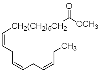 別名 亞麻酸甲酯 ;9,12,15-十八烷三烯酸甲酯 ;(Z,Z,Z)-9,12,15-十八烷三烯酸甲酯,順-9,12,15-十八碳三烯酸甲酯);Linolenic acid methyl ester; Methyl cis,cis,cis-9,12,15-octadecatrienoate