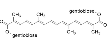 產品介紹 易溶于熱水,呈橙色,稍溶于無水乙醇、乙醚及其他有機溶劑。α-藏花素存在于各種梔子和香紅花科植物里,是類胡蘿卜素類的藏花酸與二分子龍膽雙糖結合而成的二元酯。梔子中除色素成分外,還含有單寧、果膠、精油、甘露糖及氯代吉寧等。藏花素為其黃色色素成分,與藏紅花中的藏花素相同。