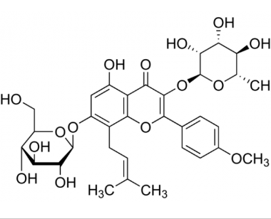別名 淫羊藿甙;淫羊藿提取物;4′-O-methyl-8-γ,γ-dimethylallylkaempferol-3-rhamnoside-7-glucoside