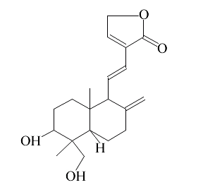 別名   脫水穿心蓮內酯 ;穿心蓮丁素;(3E)-3-[2-[(1S,4aS,5R,6R,8aS)-Decahydro-6-hydroxy-5-(hydroxymethyl)-5,8a-dimethyl-2-methylene-1-naphthalenyl]ethylidene]-2(3H)-furanone