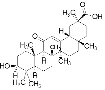 產品介紹   18 β-Glycyrrhetinic Acid is an aglycone of the triterpenoid Glyccyrrhizic acid, which is found in liquorice. inhibits the PGDH (15-hydroxyprostaglandin dehydrogenase) leading to increased prostaglandin concentration in the digestive system. Also investigated for potential antibiotic activities.