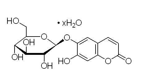 別名 秦皮甲素 ;七葉靈倍半水合物,七葉苷,6-(beta-D-吡喃葡糖氧基)-7-羥基-2H-1-苯并呋喃-2-酮;6,7-Dihydroxycoumarin 6-glucoside hydrate 6-(beta-D-Glucopyranosyloxy)-7-hydroxy-2H-1-benzopyran-2-one 7-Hydroxycoumarin-6-yl beta-D-Glucopyranoside Esculin Sesquihydrate