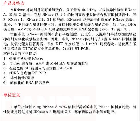 產品名稱:RNase 抑制劑 ( 豬源 )