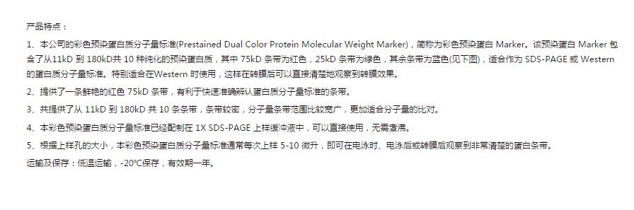 預(yù)染蛋白質(zhì)電泳分子量標(biāo)準(zhǔn) (43.0-200.0 KD)10 次