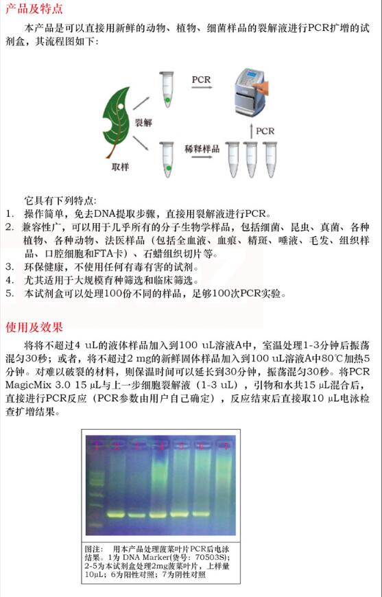產(chǎn)品名稱:免 DNA 提取 PCR 試劑盒
