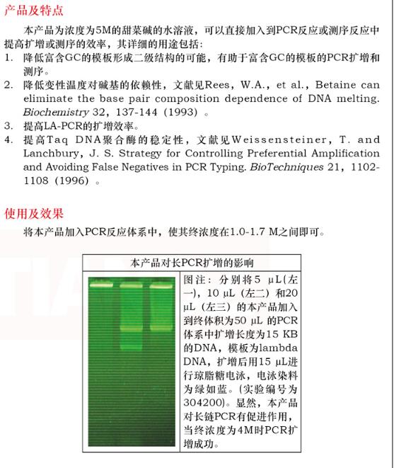 產(chǎn)品名稱:甜菜堿溶液,5M,PCR 級