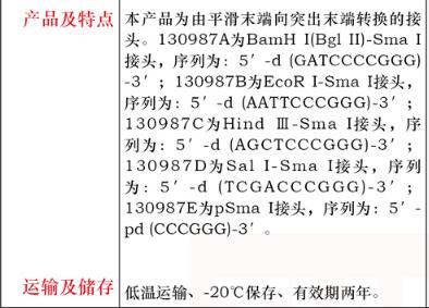 產品名稱:EcoR I-Not I-BamH I 接頭