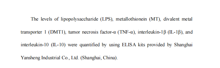 Colon and liver tissue samples (0.05-0.2 g) were dissolved using a mixture ofHNO3 and HClO4 (300 μL and 100 μL, respectively) and clarified by heating in a95℃ water bath. The volume was then fixed to 5 mL, filtered using inorganicmembranes, and the concentration of Cd was determined using ICP-MS (NexION2000, PerkinElmer, USA).