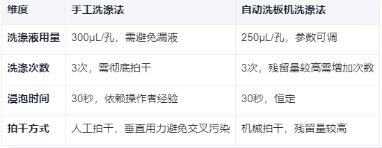 拍干控制:手工拍干需垂直用力,洗板機需定期校準吸液高度。