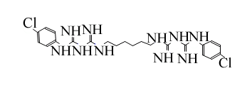 別名  氯己定 ;洗必泰; 1,1'-己基雙[5-(對氯苯基)雙胍] ;1,1-Hexamethylenebis[5-(4-chlorophenyl)biguanide] Bis(5-(p-chlorophenyl)biguanidinio)hexane Hexamethylenebis(5-(4-chlorophenyl)biguanide) N,N'-Bis(4-chlorophenyl)-3,12-diimino-tetraazatetradecanediimidamide