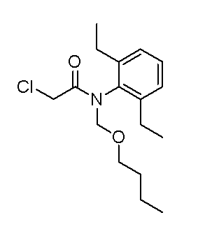 別名 丁草胺 ;去草胺,滅草特,2-氯-N-(2,6-二乙基苯基)-N-(丁氧甲基)乙酰胺,N-丁氧甲基-a-氯-2',6'-二乙基乙酰替苯 ;N-(Butoxymethyl)-2-chloro-N-(2,6-diethylphenyl)acetamide Butanex Machete Acetamide, N-(butoxymethyl)-2-chloro-N-(2,6-diethylphenyl