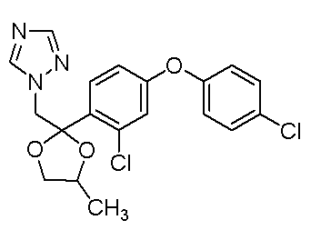 別名  噁醚唑; ,-3--4-[4-甲基-2-(1H-1,2,4-三唑-1-基甲基)-1,3-二噁戊烷-2-]苯基 4-氯苯基醚;1-((2-(2-chloro-4-(4-chlorophenoxy)phenyl)-4-methyl-1,3-dioxolan-2-yl)methyl)-1H-1,2,4-triazole