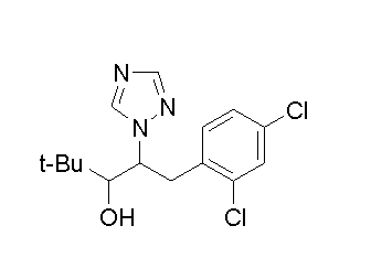 別名 芐氯三唑醇 ;(R*,R*)-(+-)-beta-[(2,4-二氯苯基)甲基]-alpha-(1,1-二甲基乙基)-1H-1,2,4-三唑-1-乙醇,(2RS,3RS)-1-(2,4-二氯苯基)-4,4-二甲基-2-(1H-1,2,4-三唑-1-基)戊-3-醇;