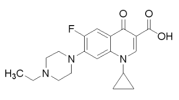 別名恩氟沙星;1-Cyclopropyl-7-(4-ethyl-1-piperazinyl)-6-fluoro-1,4-dihydro-4-oxo-3-quinolinecarboxylic acid Baytril