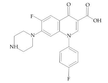 別名沙拉沙星 ;6-fluoro-1-(4-fluorophenyl)-1,4-dihydro-4-oxo-7-(1-piperazinyl)-3-Quinolinecarboxylic acid