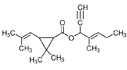 別名 烯炔菊酯 ;右旋反式炔戊菊酯, 烯炔菊酯,右旋-反式-2,2-二甲基-3-(2-甲基-1-丙烯基)環丙烷羧酸 (E)-1-乙炔基-2-甲基-戊-2-烯基酯;1-Ethinyl-2-methyl-2-penten-1-yl chrysanthemate