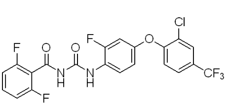 別名  氟蟲(chóng)脲 ;卡死克,氟芬隆,1-[2--4-(2--4-三氟甲基苯氧基)苯基]-3-(2,6-二氟苯甲酰基);N-{4-[2-Chloro-4-(trifluoromethyl)phenoxy]-2-fluorophenylaminocarbonyl}-2,6-difluoro-benzamide