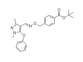 別名 (E)-alpha-(1,3-二甲基-5-苯氧基吡唑-4-亞甲基氨基氧)對甲苯甲酸叔丁酯;殺螨王;霸螨靈;1,1-Dimethylethyl (E)-4-(((((1,3-dimethyl-5-phenoxy-1H-pyrazol-4-yl)methylene)amino)oxy)methyl)benzoate; tert-Butyl (E)-4-(((((1,3-dimethyl-5-phenoxy-1H-pyrazol-4-yl)methylene)amino)oxy)methyl)benzoate