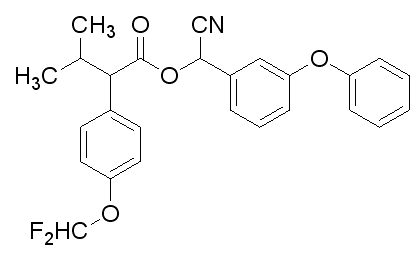 別名 氟氰戊菊酯 ;氟氰菊酯;中西氟氰菊酯;R,S)α-氰基-間苯氧基芐基(S)-2-(對二氟甲氧基苯基)-3-甲基丁酸酯;α-Cyano-3-phenoxybenzyl 4-difluoromethoxy-α-isopropylphenylacetate