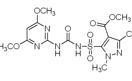 別名 3-氯-5-[[3-(4,6-二甲氧基吡啶-2-基)脲基]磺?;?span>]-1-甲基-1H-吡唑-4-羧酸甲酯; 3-(4,6-二甲氧基嘧啶-2-基)-1-(1-甲基-3-氯-4-甲氧基甲?;吝?span>-5-基)磺酰脲;Methyl 3-Chloro-5-[[3-(4,6-dimethoxypyrimidin-2-yl)ureido]sulfonyl]-1-methyl-1H-pyrazole-4-carboxylate;3-Chloro-5-[[3-(4,6-dimethoxypyrimidin-2-yl)ureido]sulfonyl]-1-methyl-1H-pyrazole-4-carboxylic Acid Methyl Ester