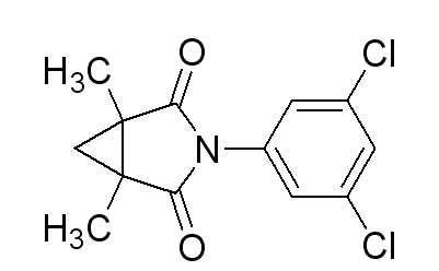 別名  速克靈;殺霉利;N-(3,5-二氯苯基)-1,2-二甲基環丙烷-1,2-二甲酰基亞胺;N-(3,5-Dichlorophenyl)-1,2-dimethyl-1,2-Cyclopropanedicarboximide; 3-(3,5-Dichlorophenyl)-1,5-dimethyl-3-azabicyclo[3.1.0]hexane-2,4-dione
