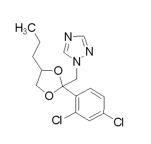 別名 丙環(huán)唑 ;1-[2,4-二氯苯基)-4-丙基-1,3-二氧戊環(huán)-2-甲基]-1氫-1,2,4-三唑;